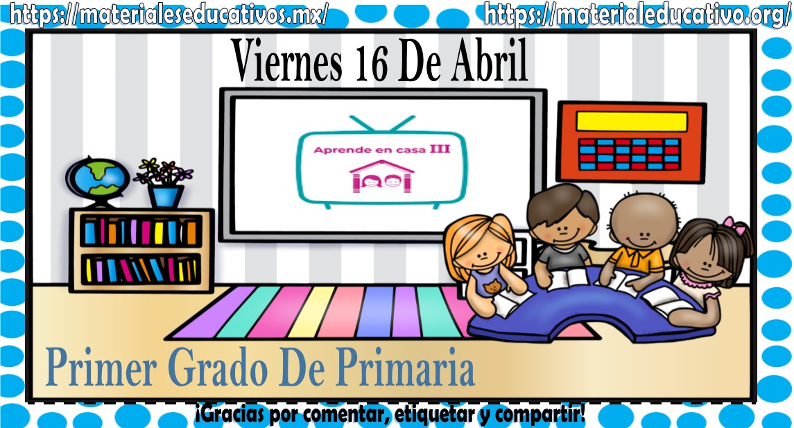 Amigos, compañeros docentes, padres de familia y alumnos que nos visitan, como ya es costumbre nosotros les proporcionaremos las clases contempladas para observarse en la TV del programa aprende en casa III, lo que antes se conocía como videos y preguntas. En esta oportunidad les queremos proporcionar las clases del primer grado de primaria del viernes 16 de abril del 2021 del presente ciclo escolar 2020 – 2021, estaremos seguros que con este material podrá facilitar la realización de las actividades planteadas por parte del programa. Muchas gracias por visitarnos y recuerden que aquí podrán encontrar las preguntas, videos y todas las clases del programa de aprende en casa 2. Recuerden compartir nuestros enlaces en sus redes sociales y etiquetar a sus compañeros y amigos docentes en nuestras publicaciones.