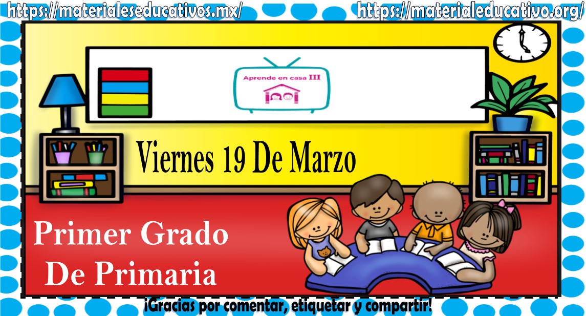 Amigos, compañeros docentes, padres de familia y alumnos que nos visitan, como ya es costumbre nosotros les proporcionaremos las clases contempladas para observarse en la TV del programa aprende en casa III, lo que antes se conocía como videos y preguntas. En esta oportunidad les queremos proporcionar las clases del primer grado de primaria del viernes 19 de marzo del 2021 del presente ciclo escolar 2020 – 2021, estaremos seguros que con este material podrá facilitar la realización de las actividades planteadas por parte del programa. Muchas gracias por visitarnos y recuerden que aquí podrán encontrar las preguntas, videos y todas las clases del programa de aprende en casa 2. Recuerden compartir nuestros enlaces en sus redes sociales y etiquetar a sus compañeros y amigos docentes en nuestras publicaciones.