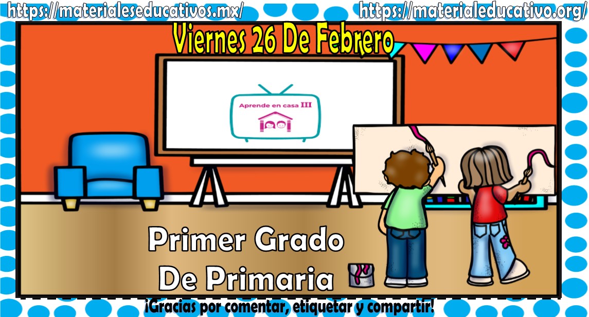Amigos, compañeros docentes, padres de familia y alumnos que nos visitan, como ya es costumbre nosotros les proporcionaremos las clases contempladas para observarse en la TV del programa aprende en casa III, lo que antes se conocía como videos y preguntas. En esta oportunidad les queremos proporcionar las clases del primer grado de primaria del viernes 26 de febrero del 2021 del presente ciclo escolar 2020 – 2021, estaremos seguros que con este material podrá facilitar la realización de las actividades planteadas por parte del programa. Muchas gracias por visitarnos y recuerden que aquí podrán encontrar las preguntas, videos y todas las clases del programa de aprende en casa 2. Recuerden compartir nuestros enlaces en sus redes sociales y etiquetar a sus compañeros y amigos docentes en nuestras publicaciones.