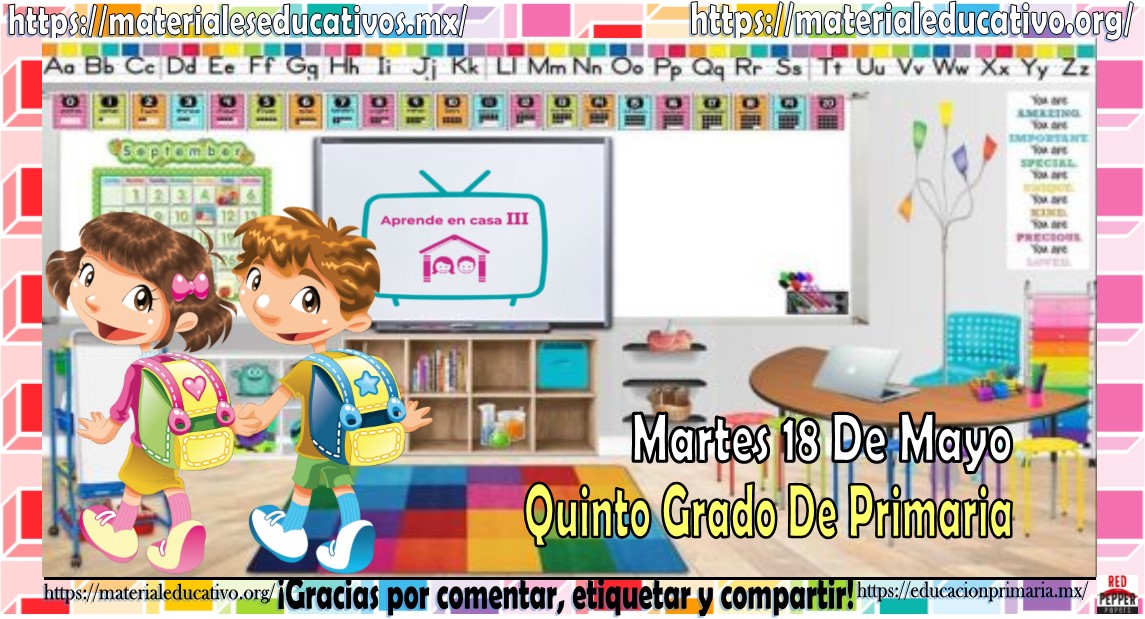 Amigos, compañeros docentes, padres de familia y alumnos que nos visitan, como ya es costumbre nosotros les proporcionaremos las clases contempladas para observarse en la TV del programa aprende en casa III, lo que antes se conocía como videos y preguntas. En esta oportunidad les queremos proporcionar las clases del quinto grado de primaria del martes 18 de mayo del 2021 del presente ciclo escolar 2020 – 2021, estaremos seguros que con este material podrá facilitar la realización de las actividades planteadas por parte del programa. Muchas gracias por visitarnos y recuerden que aquí podrán encontrar las preguntas, videos y todas las clases del programa de aprende en casa 2. Recuerden compartir nuestros enlaces en sus redes sociales y etiquetar a sus compañeros y amigos docentes en nuestras publicaciones.