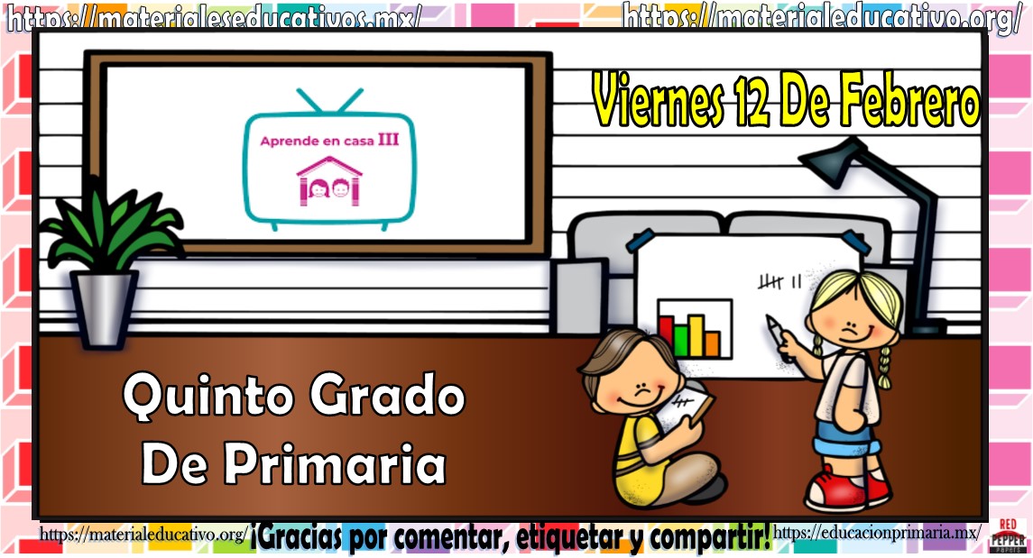 Amigos, compañeros docentes, padres de familia y alumnos que nos visitan, como ya es costumbre nosotros les proporcionaremos las clases contempladas para observarse en la TV del programa aprende en casa III, lo que antes se conocía como videos y preguntas. En esta oportunidad les queremos proporcionar las clases del quinto grado de primaria del viernes 12 de febrero del 2021 del presente ciclo escolar 2020 – 2021, estaremos seguros que con este material podrá facilitar la realización de las actividades planteadas por parte del programa. Muchas gracias por visitarnos y recuerden que aquí podrán encontrar las preguntas, videos y todas las clases del programa de aprende en casa 2. Recuerden compartir nuestros enlaces en sus redes sociales y etiquetar a sus compañeros y amigos docentes en nuestras publicaciones.