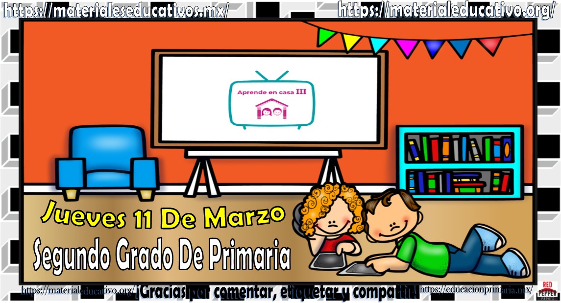 Amigos, compañeros docentes, padres de familia y alumnos que nos visitan, como ya es costumbre nosotros les proporcionaremos las clases contempladas para observarse en la TV del programa aprende en casa III, lo que antes se conocía como videos y preguntas. En esta oportunidad les queremos proporcionar las clases del segundo grado de primaria del jueves 11 de marzo del 2021 del presente ciclo escolar 2020 – 2021, estaremos seguros que con este material podrá facilitar la realización de las actividades planteadas por parte del programa. Muchas gracias por visitarnos y recuerden que aquí podrán encontrar las preguntas, videos y todas las clases del programa de aprende en casa 2. Recuerden compartir nuestros enlaces en sus redes sociales y etiquetar a sus compañeros y amigos docentes en nuestras publicaciones.