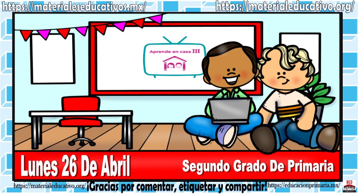 Amigos, compañeros docentes, padres de familia y alumnos que nos visitan, como ya es costumbre nosotros les proporcionaremos las clases contempladas para observarse en la TV del programa aprende en casa III, lo que antes se conocía como videos y preguntas. En esta oportunidad les queremos proporcionar las clases del segundo grado de primaria del lunes 26 de abril del 2021 del presente ciclo escolar 2020 – 2021, estaremos seguros que con este material podrá facilitar la realización de las actividades planteadas por parte del programa. Muchas gracias por visitarnos y recuerden que aquí podrán encontrar las preguntas, videos y todas las clases del programa de aprende en casa 2. Recuerden compartir nuestros enlaces en sus redes sociales y etiquetar a sus compañeros y amigos docentes en nuestras publicaciones.