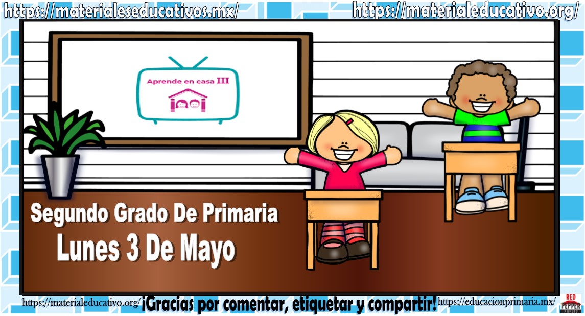 Amigos, compañeros docentes, padres de familia y alumnos que nos visitan, como ya es costumbre nosotros les proporcionaremos las clases contempladas para observarse en la TV del programa aprende en casa III, lo que antes se conocía como videos y preguntas. En esta oportunidad les queremos proporcionar las clases del segundo grado de primaria del lunes 3 de mayo del 2021 del presente ciclo escolar 2020 – 2021, estaremos seguros que con este material podrá facilitar la realización de las actividades planteadas por parte del programa. Muchas gracias por visitarnos y recuerden que aquí podrán encontrar las preguntas, videos y todas las clases del programa de aprende en casa 2. Recuerden compartir nuestros enlaces en sus redes sociales y etiquetar a sus compañeros y amigos docentes en nuestras publicaciones.