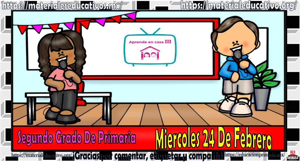 Amigos, compañeros docentes, padres de familia y alumnos que nos visitan, como ya es costumbre nosotros les proporcionaremos las clases contempladas para observarse en la TV del programa aprende en casa III, lo que antes se conocía como videos y preguntas. En esta oportunidad les queremos proporcionar las clases del segundo grado de primaria del miércoles 24 de febrero del 2021 del presente ciclo escolar 2020 – 2021, estaremos seguros que con este material podrá facilitar la realización de las actividades planteadas por parte del programa. Muchas gracias por visitarnos y recuerden que aquí podrán encontrar las preguntas, videos y todas las clases del programa de aprende en casa 2. Recuerden compartir nuestros enlaces en sus redes sociales y etiquetar a sus compañeros y amigos docentes en nuestras publicaciones.