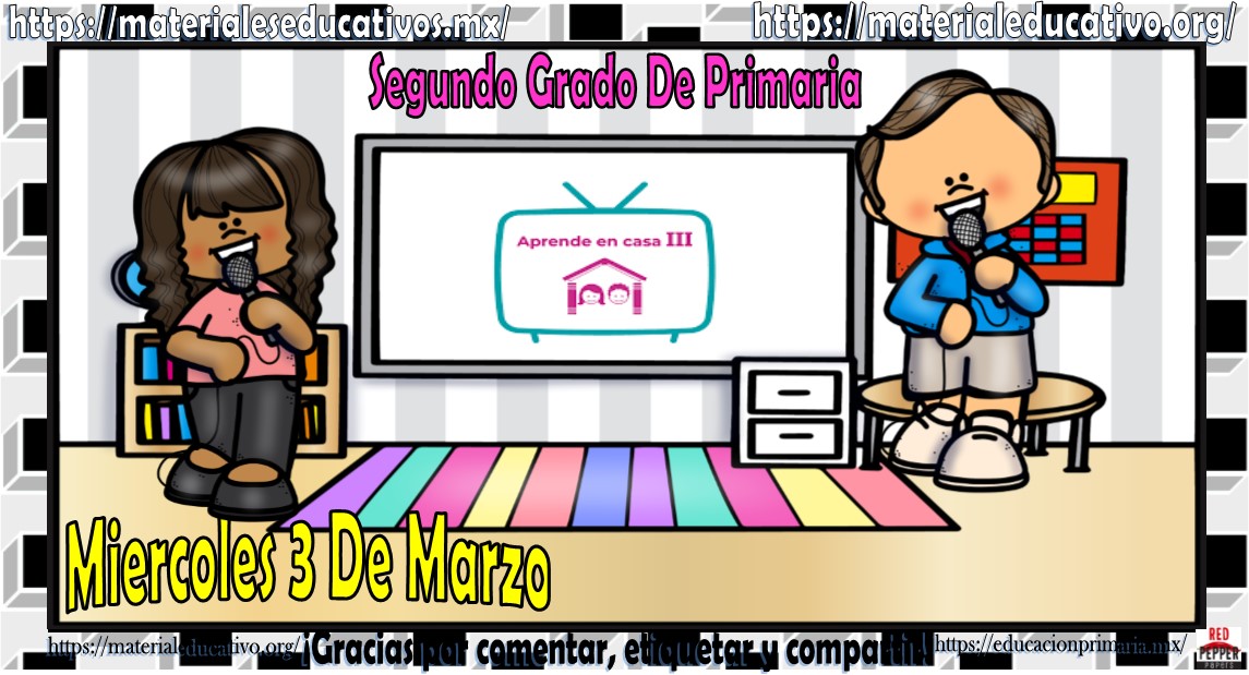 Amigos, compañeros docentes, padres de familia y alumnos que nos visitan, como ya es costumbre nosotros les proporcionaremos las clases contempladas para observarse en la TV del programa aprende en casa III, lo que antes se conocía como videos y preguntas. En esta oportunidad les queremos proporcionar las clases del segundo grado de primaria del miércoles 3 de marzo del 2021 del presente ciclo escolar 2020 – 2021, estaremos seguros que con este material podrá facilitar la realización de las actividades planteadas por parte del programa. Muchas gracias por visitarnos y recuerden que aquí podrán encontrar las preguntas, videos y todas las clases del programa de aprende en casa 2. Recuerden compartir nuestros enlaces en sus redes sociales y etiquetar a sus compañeros y amigos docentes en nuestras publicaciones.