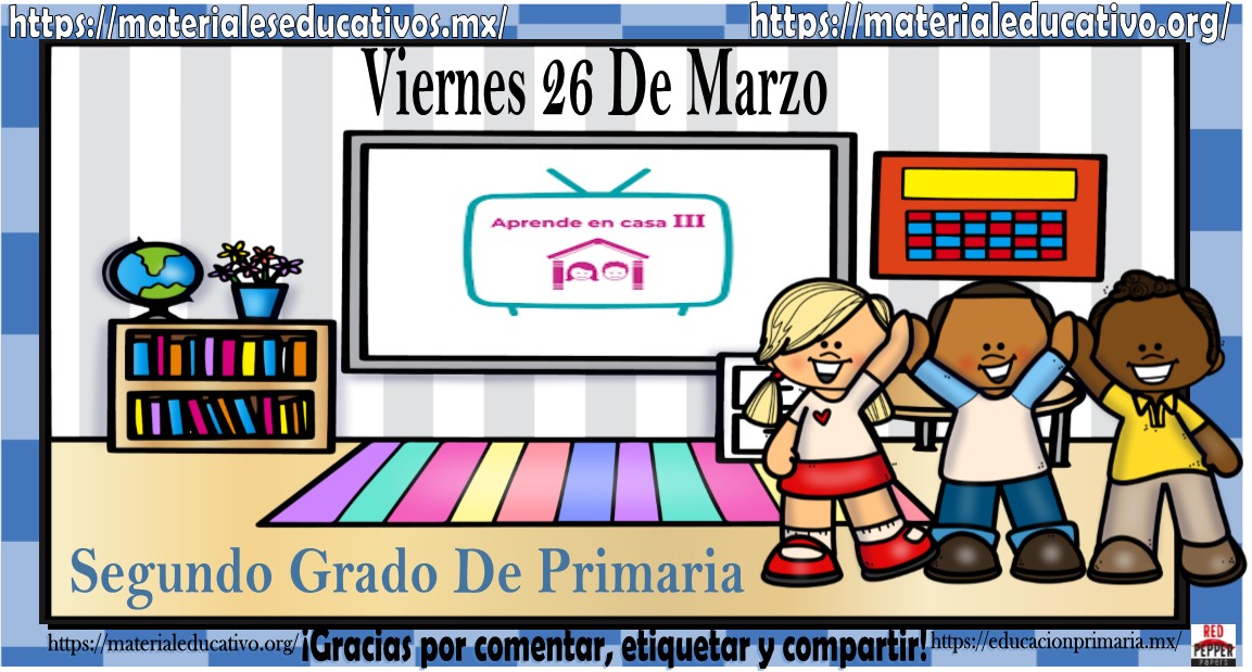 Amigos, compañeros docentes, padres de familia y alumnos que nos visitan, como ya es costumbre nosotros les proporcionaremos las clases contempladas para observarse en la TV del programa aprende en casa III, lo que antes se conocía como videos y preguntas. En esta oportunidad les queremos proporcionar las clases del segundo grado de primaria del viernes 26 de marzo del 2021 del presente ciclo escolar 2020 – 2021, estaremos seguros que con este material podrá facilitar la realización de las actividades planteadas por parte del programa. Muchas gracias por visitarnos y recuerden que aquí podrán encontrar las preguntas, videos y todas las clases del programa de aprende en casa 2. Recuerden compartir nuestros enlaces en sus redes sociales y etiquetar a sus compañeros y amigos docentes en nuestras publicaciones.