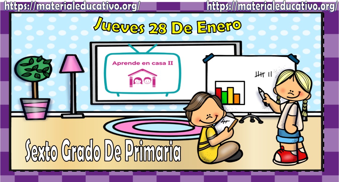 Amigos, compañeros docentes, padres de familia y alumnos que nos visitan, como ya es costumbre nosotros les proporcionaremos las clases contempladas para observarse en la TV del programa aprende en casa III, lo que antes se conocía como videos y preguntas. En esta oportunidad les queremos proporcionar las clases del sexto grado de primaria del jueves 28 de enero del 2021 del presente ciclo escolar 2020 – 2021, estaremos seguros que con este material podrá facilitar la realización de las actividades planteadas por parte del programa. Muchas gracias por visitarnos y recuerden que aquí podrán encontrar las preguntas, videos y todas las clases del programa de aprende en casa 2. Recuerden compartir nuestros enlaces en sus redes sociales y etiquetar a sus compañeros y amigos docentes en nuestras publicaciones.
