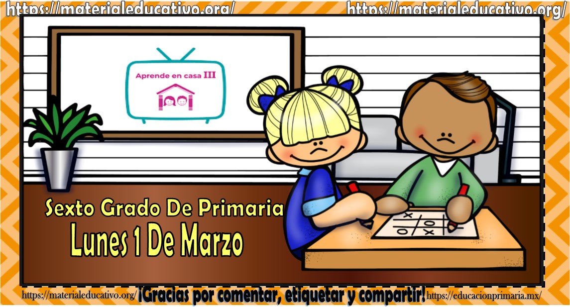 Amigos, compañeros docentes, padres de familia y alumnos que nos visitan, como ya es costumbre nosotros les proporcionaremos las clases contempladas para observarse en la TV del programa aprende en casa III, lo que antes se conocía como videos y preguntas. En esta oportunidad les queremos proporcionar las clases del sexto grado de primaria del lunes 1 de marzo del 2021 del presente ciclo escolar 2020 – 2021, estaremos seguros que con este material podrá facilitar la realización de las actividades planteadas por parte del programa. Muchas gracias por visitarnos y recuerden que aquí podrán encontrar las preguntas, videos y todas las clases del programa de aprende en casa 2. Recuerden compartir nuestros enlaces en sus redes sociales y etiquetar a sus compañeros y amigos docentes en nuestras publicaciones.