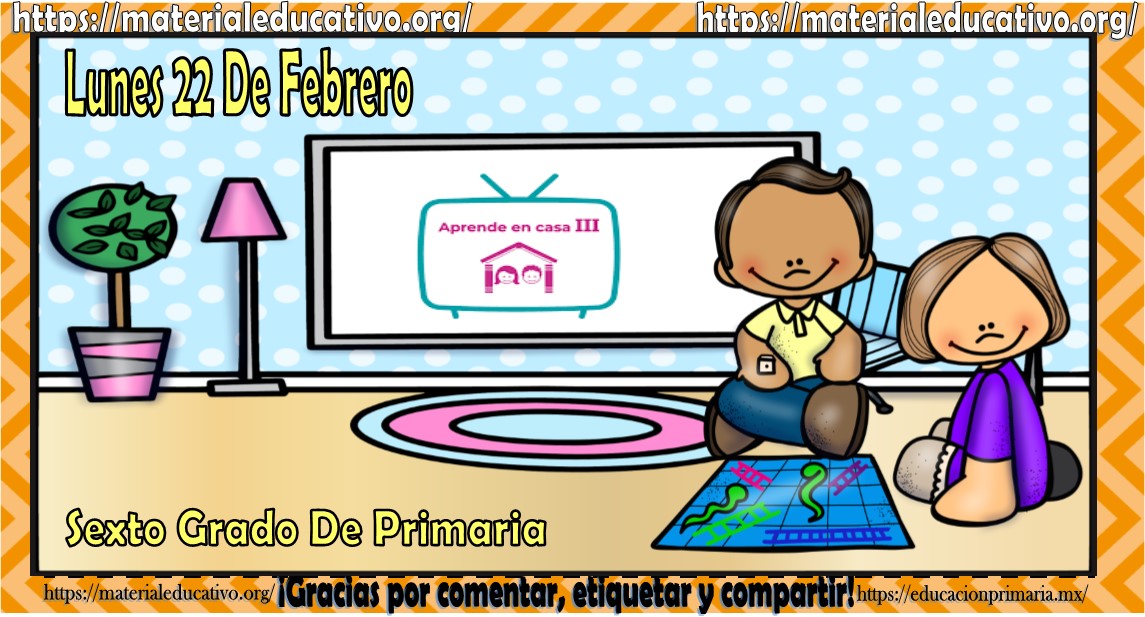 Amigos, compañeros docentes, padres de familia y alumnos que nos visitan, como ya es costumbre nosotros les proporcionaremos las clases contempladas para observarse en la TV del programa aprende en casa III, lo que antes se conocía como videos y preguntas. En esta oportunidad les queremos proporcionar las clases del sexto grado de primaria del lunes 22 de febrero del 2021 del presente ciclo escolar 2020 – 2021, estaremos seguros que con este material podrá facilitar la realización de las actividades planteadas por parte del programa. Muchas gracias por visitarnos y recuerden que aquí podrán encontrar las preguntas, videos y todas las clases del programa de aprende en casa 2. Recuerden compartir nuestros enlaces en sus redes sociales y etiquetar a sus compañeros y amigos docentes en nuestras publicaciones.