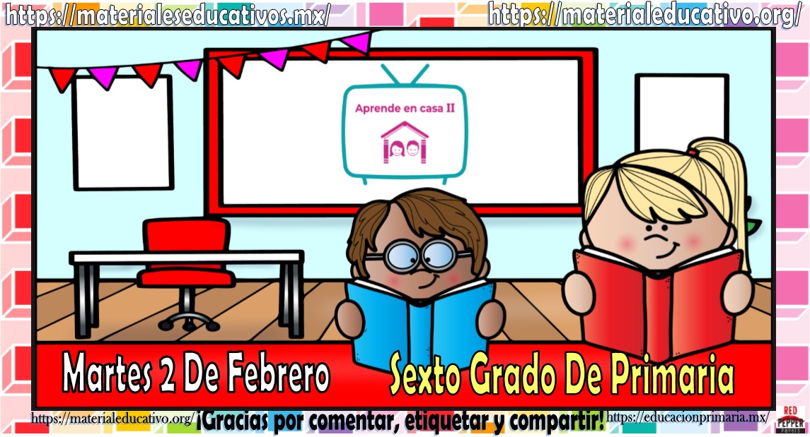 Amigos, compañeros docentes, padres de familia y alumnos que nos visitan, como ya es costumbre nosotros les proporcionaremos las clases contempladas para observarse en la TV del programa aprende en casa III, lo que antes se conocía como videos y preguntas. En esta oportunidad les queremos proporcionar las clases del sexto grado de primaria del martes 2 de febrero del 2021 del presente ciclo escolar 2020 – 2021, estaremos seguros que con este material podrá facilitar la realización de las actividades planteadas por parte del programa. Muchas gracias por visitarnos y recuerden que aquí podrán encontrar las preguntas, videos y todas las clases del programa de aprende en casa 2. Recuerden compartir nuestros enlaces en sus redes sociales y etiquetar a sus compañeros y amigos docentes en nuestras publicaciones.