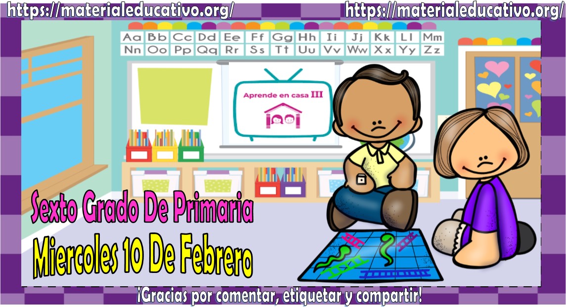 Amigos, compañeros docentes, padres de familia y alumnos que nos visitan, como ya es costumbre nosotros les proporcionaremos las clases contempladas para observarse en la TV del programa aprende en casa III, lo que antes se conocía como videos y preguntas. En esta oportunidad les queremos proporcionar las clases del sexto grado de primaria del miércoles 10 de febrero del 2021 del presente ciclo escolar 2020 – 2021, estaremos seguros que con este material podrá facilitar la realización de las actividades planteadas por parte del programa. Muchas gracias por visitarnos y recuerden que aquí podrán encontrar las preguntas, videos y todas las clases del programa de aprende en casa 2. Recuerden compartir nuestros enlaces en sus redes sociales y etiquetar a sus compañeros y amigos docentes en nuestras publicaciones.