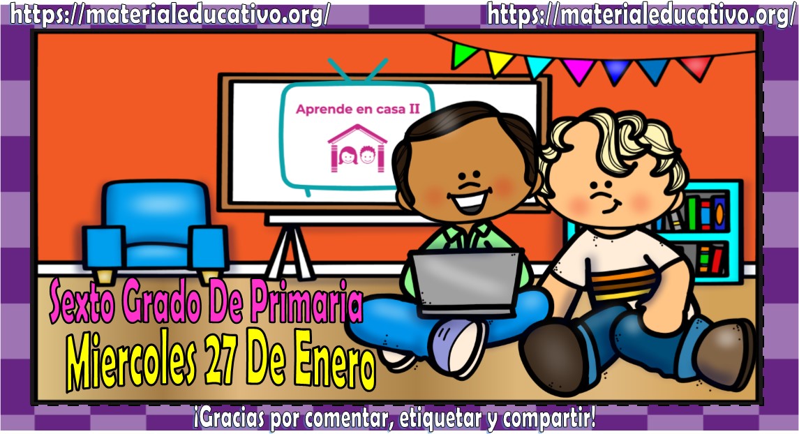 Amigos, compañeros docentes, padres de familia y alumnos que nos visitan, como ya es costumbre nosotros les proporcionaremos las clases contempladas para observarse en la TV del programa aprende en casa III, lo que antes se conocía como videos y preguntas. En esta oportunidad les queremos proporcionar las clases del sexto grado de primaria del miércoles 27 de enero del 2021 del presente ciclo escolar 2020 – 2021, estaremos seguros que con este material podrá facilitar la realización de las actividades planteadas por parte del programa. Muchas gracias por visitarnos y recuerden que aquí podrán encontrar las preguntas, videos y todas las clases del programa de aprende en casa 2. Recuerden compartir nuestros enlaces en sus redes sociales y etiquetar a sus compañeros y amigos docentes en nuestras publicaciones.