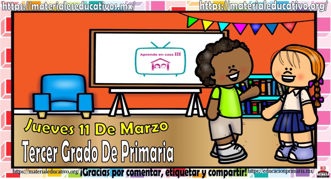 Amigos, compañeros docentes, padres de familia y alumnos que nos visitan, como ya es costumbre nosotros les proporcionaremos las clases contempladas para observarse en la TV del programa aprende en casa III, lo que antes se conocía como videos y preguntas. En esta oportunidad les queremos proporcionar las clases del tercer grado de primaria del jueves 11 de marzo del 2021 del presente ciclo escolar 2020 – 2021, estaremos seguros que con este material podrá facilitar la realización de las actividades planteadas por parte del programa. Muchas gracias por visitarnos y recuerden que aquí podrán encontrar las preguntas, videos y todas las clases del programa de aprende en casa 2. Recuerden compartir nuestros enlaces en sus redes sociales y etiquetar a sus compañeros y amigos docentes en nuestras publicaciones.