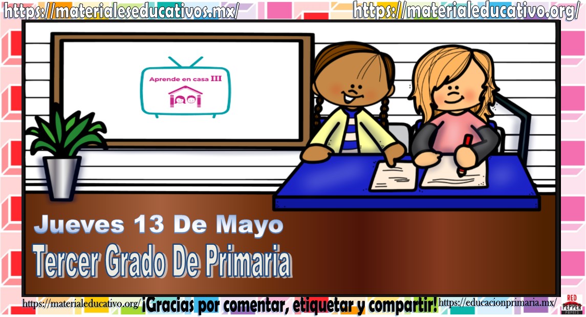 Amigos, compañeros docentes, padres de familia y alumnos que nos visitan, como ya es costumbre nosotros les proporcionaremos las clases contempladas para observarse en la TV del programa aprende en casa III, lo que antes se conocía como videos y preguntas. En esta oportunidad les queremos proporcionar las clases del tercer grado de primaria del jueves 13 de mayo del 2021 del presente ciclo escolar 2020 – 2021, estaremos seguros que con este material podrá facilitar la realización de las actividades planteadas por parte del programa. Muchas gracias por visitarnos y recuerden que aquí podrán encontrar las preguntas, videos y todas las clases del programa de aprende en casa 2. Recuerden compartir nuestros enlaces en sus redes sociales y etiquetar a sus compañeros y amigos docentes en nuestras publicaciones.
