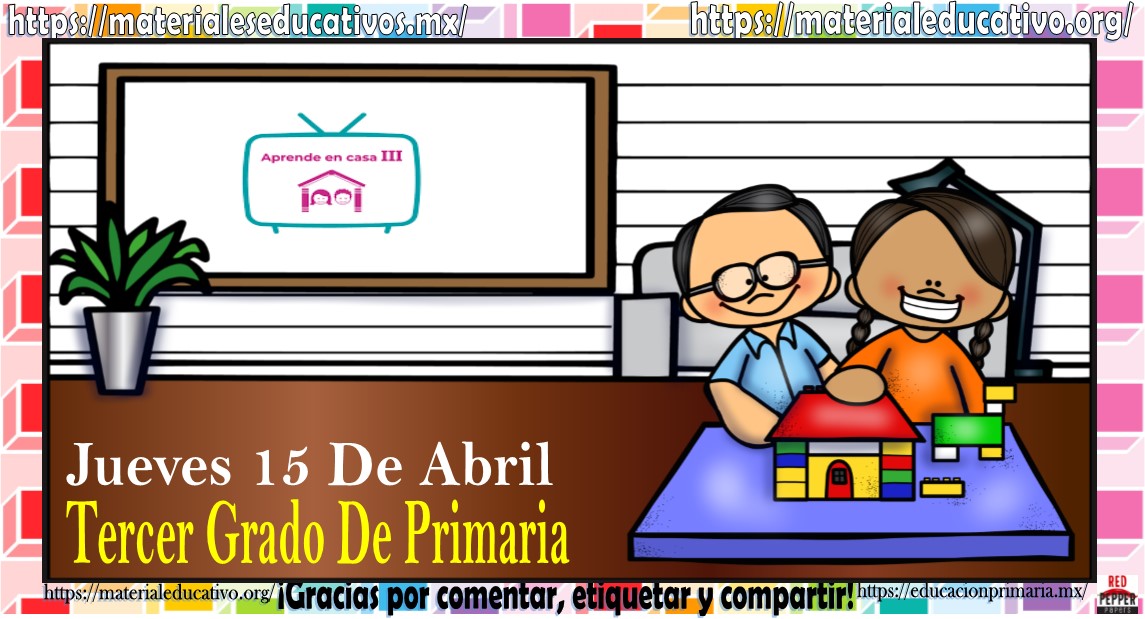 Amigos, compañeros docentes, padres de familia y alumnos que nos visitan, como ya es costumbre nosotros les proporcionaremos las clases contempladas para observarse en la TV del programa aprende en casa III, lo que antes se conocía como videos y preguntas. En esta oportunidad les queremos proporcionar las clases del tercer grado de primaria del jueves 15 de abril del 2021 del presente ciclo escolar 2020 – 2021, estaremos seguros que con este material podrá facilitar la realización de las actividades planteadas por parte del programa. Muchas gracias por visitarnos y recuerden que aquí podrán encontrar las preguntas, videos y todas las clases del programa de aprende en casa 2. Recuerden compartir nuestros enlaces en sus redes sociales y etiquetar a sus compañeros y amigos docentes en nuestras publicaciones.