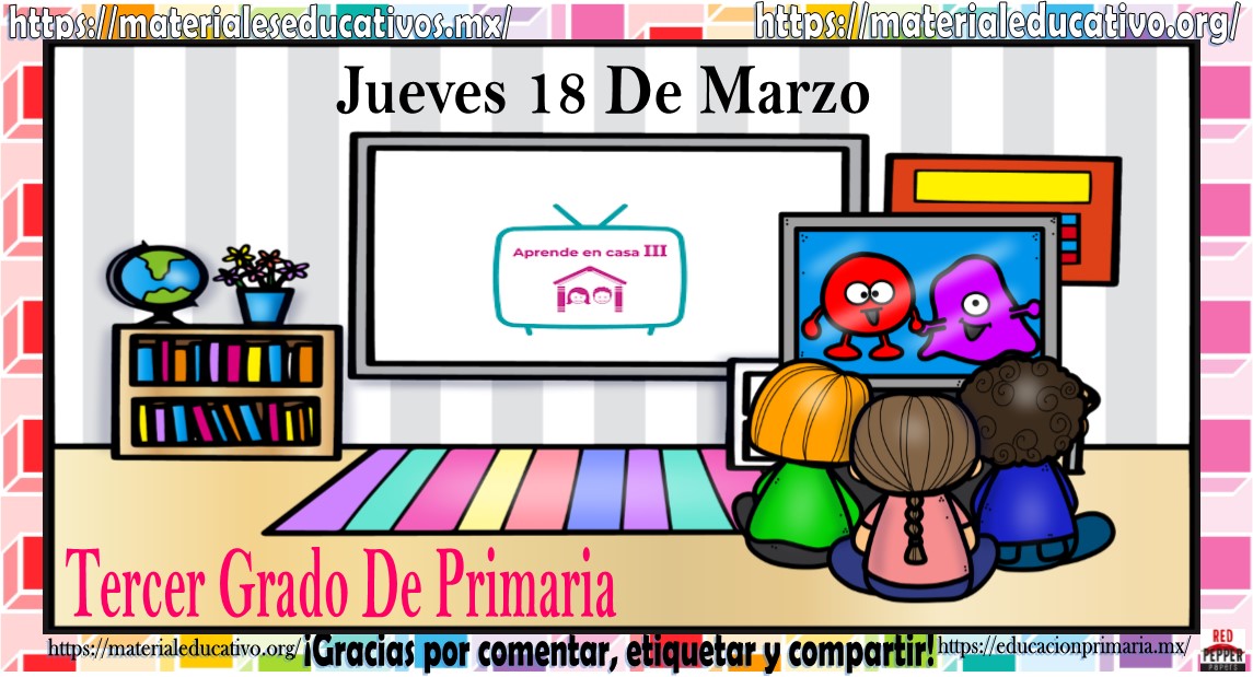Amigos, compañeros docentes, padres de familia y alumnos que nos visitan, como ya es costumbre nosotros les proporcionaremos las clases contempladas para observarse en la TV del programa aprende en casa III, lo que antes se conocía como videos y preguntas. En esta oportunidad les queremos proporcionar las clases del tercer grado de primaria del jueves 18 de marzo del 2021 del presente ciclo escolar 2020 – 2021, estaremos seguros que con este material podrá facilitar la realización de las actividades planteadas por parte del programa. Muchas gracias por visitarnos y recuerden que aquí podrán encontrar las preguntas, videos y todas las clases del programa de aprende en casa 2. Recuerden compartir nuestros enlaces en sus redes sociales y etiquetar a sus compañeros y amigos docentes en nuestras publicaciones.