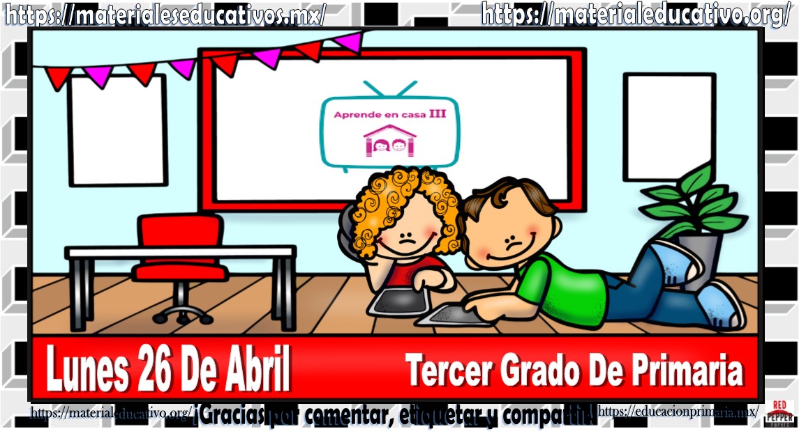 Amigos, compañeros docentes, padres de familia y alumnos que nos visitan, como ya es costumbre nosotros les proporcionaremos las clases contempladas para observarse en la TV del programa aprende en casa III, lo que antes se conocía como videos y preguntas. En esta oportunidad les queremos proporcionar las clases del tercer grado de primaria del lunes 26 de abril del 2021 del presente ciclo escolar 2020 – 2021, estaremos seguros que con este material podrá facilitar la realización de las actividades planteadas por parte del programa. Muchas gracias por visitarnos y recuerden que aquí podrán encontrar las preguntas, videos y todas las clases del programa de aprende en casa 2. Recuerden compartir nuestros enlaces en sus redes sociales y etiquetar a sus compañeros y amigos docentes en nuestras publicaciones.