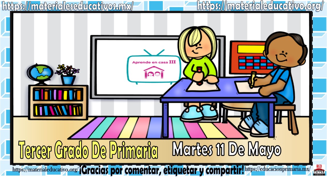 Amigos, compañeros docentes, padres de familia y alumnos que nos visitan, como ya es costumbre nosotros les proporcionaremos las clases contempladas para observarse en la TV del programa aprende en casa III, lo que antes se conocía como videos y preguntas. En esta oportunidad les queremos proporcionar las clases del tercer grado de primaria del martes 11 de mayo del 2021 del presente ciclo escolar 2020 – 2021, estaremos seguros que con este material podrá facilitar la realización de las actividades planteadas por parte del programa. Muchas gracias por visitarnos y recuerden que aquí podrán encontrar las preguntas, videos y todas las clases del programa de aprende en casa 2. Recuerden compartir nuestros enlaces en sus redes sociales y etiquetar a sus compañeros y amigos docentes en nuestras publicaciones.
