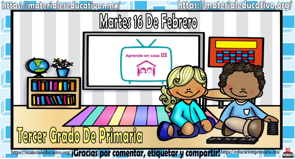 Amigos, compañeros docentes, padres de familia y alumnos que nos visitan, como ya es costumbre nosotros les proporcionaremos las clases contempladas para observarse en la TV del programa aprende en casa III, lo que antes se conocía como videos y preguntas. En esta oportunidad les queremos proporcionar las clases del tercer grado de primaria del martes 16 de febrero del 2021 del presente ciclo escolar 2020 – 2021, estaremos seguros que con este material podrá facilitar la realización de las actividades planteadas por parte del programa. Muchas gracias por visitarnos y recuerden que aquí podrán encontrar las preguntas, videos y todas las clases del programa de aprende en casa 2. Recuerden compartir nuestros enlaces en sus redes sociales y etiquetar a sus compañeros y amigos docentes en nuestras publicaciones.