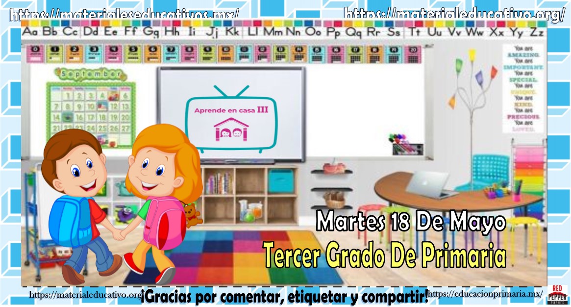 Amigos, compañeros docentes, padres de familia y alumnos que nos visitan, como ya es costumbre nosotros les proporcionaremos las clases contempladas para observarse en la TV del programa aprende en casa III, lo que antes se conocía como videos y preguntas. En esta oportunidad les queremos proporcionar las clases del tercer grado de primaria del martes 18 de mayo del 2021 del presente ciclo escolar 2020 – 2021, estaremos seguros que con este material podrá facilitar la realización de las actividades planteadas por parte del programa. Muchas gracias por visitarnos y recuerden que aquí podrán encontrar las preguntas, videos y todas las clases del programa de aprende en casa 2. Recuerden compartir nuestros enlaces en sus redes sociales y etiquetar a sus compañeros y amigos docentes en nuestras publicaciones.