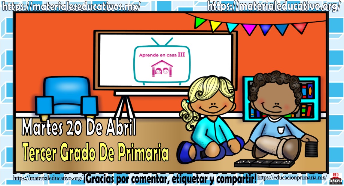 Amigos, compañeros docentes, padres de familia y alumnos que nos visitan, como ya es costumbre nosotros les proporcionaremos las clases contempladas para observarse en la TV del programa aprende en casa III, lo que antes se conocía como videos y preguntas. En esta oportunidad les queremos proporcionar las clases del tercer grado de primaria del martes 20 de abril del 2021 del presente ciclo escolar 2020 – 2021, estaremos seguros que con este material podrá facilitar la realización de las actividades planteadas por parte del programa. Muchas gracias por visitarnos y recuerden que aquí podrán encontrar las preguntas, videos y todas las clases del programa de aprende en casa 2. Recuerden compartir nuestros enlaces en sus redes sociales y etiquetar a sus compañeros y amigos docentes en nuestras publicaciones.