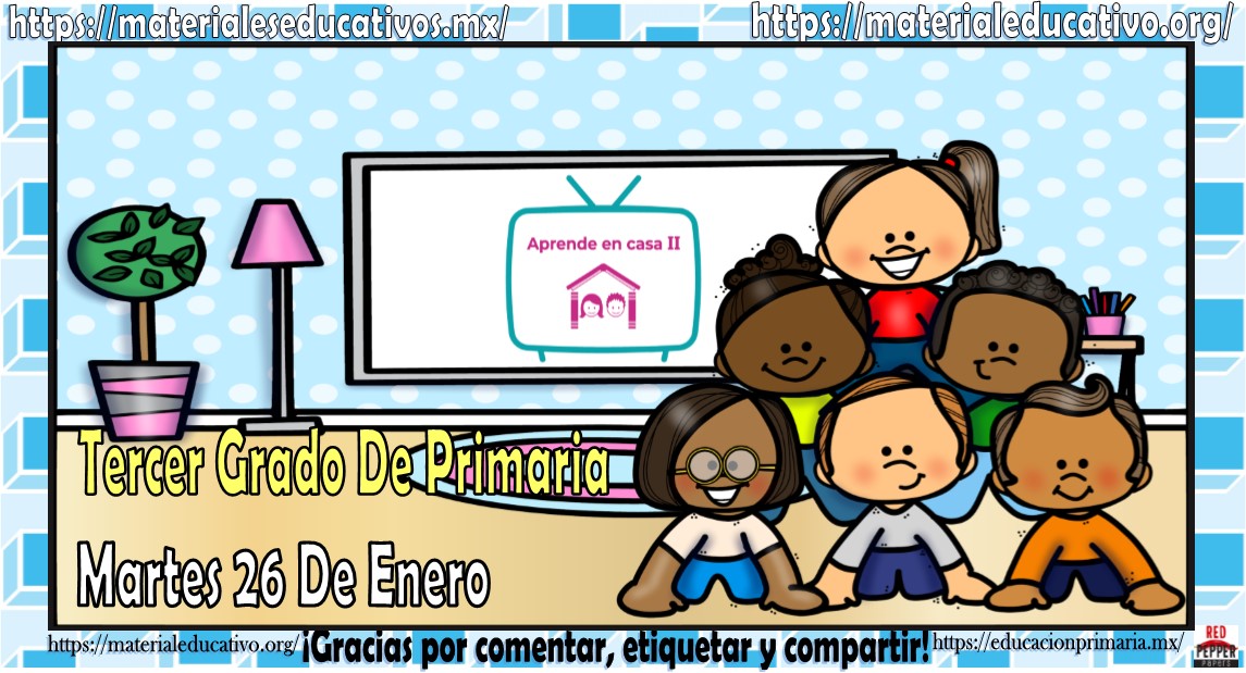 Amigos, compañeros docentes, padres de familia y alumnos que nos visitan, como ya es costumbre nosotros les proporcionaremos las clases contempladas para observarse en la TV del programa aprende en casa III, lo que antes se conocía como videos y preguntas. En esta oportunidad les queremos proporcionar las clases del tercer grado de primaria del martes 26 de enero del 2021 del presente ciclo escolar 2020 – 2021, estaremos seguros que con este material podrá facilitar la realización de las actividades planteadas por parte del programa. Muchas gracias por visitarnos y recuerden que aquí podrán encontrar las preguntas, videos y todas las clases del programa de aprende en casa 2. Recuerden compartir nuestros enlaces en sus redes sociales y etiquetar a sus compañeros y amigos docentes en nuestras publicaciones.
