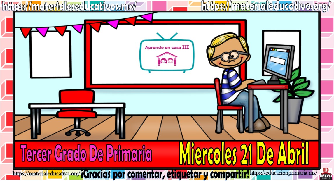 Amigos, compañeros docentes, padres de familia y alumnos que nos visitan, como ya es costumbre nosotros les proporcionaremos las clases contempladas para observarse en la TV del programa aprende en casa III, lo que antes se conocía como videos y preguntas. En esta oportunidad les queremos proporcionar las clases del tercer grado de primaria del miércoles 21 de abril del 2021 del presente ciclo escolar 2020 – 2021, estaremos seguros que con este material podrá facilitar la realización de las actividades planteadas por parte del programa. Muchas gracias por visitarnos y recuerden que aquí podrán encontrar las preguntas, videos y todas las clases del programa de aprende en casa 2. Recuerden compartir nuestros enlaces en sus redes sociales y etiquetar a sus compañeros y amigos docentes en nuestras publicaciones.