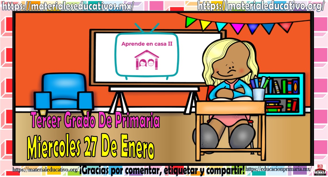 Amigos, compañeros docentes, padres de familia y alumnos que nos visitan, como ya es costumbre nosotros les proporcionaremos las clases contempladas para observarse en la TV del programa aprende en casa III, lo que antes se conocía como videos y preguntas. En esta oportunidad les queremos proporcionar las clases del tercer grado de primaria del miércoles 27 de enero del 2021 del presente ciclo escolar 2020 – 2021, estaremos seguros que con este material podrá facilitar la realización de las actividades planteadas por parte del programa. Muchas gracias por visitarnos y recuerden que aquí podrán encontrar las preguntas, videos y todas las clases del programa de aprende en casa 2. Recuerden compartir nuestros enlaces en sus redes sociales y etiquetar a sus compañeros y amigos docentes en nuestras publicaciones.
