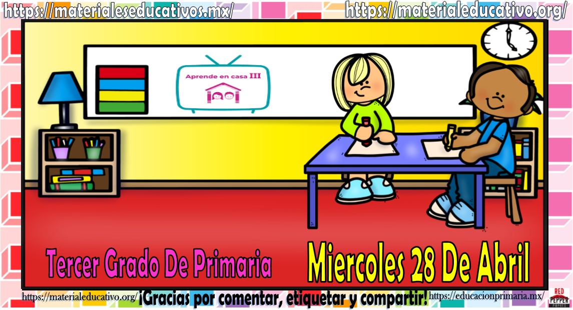 Amigos, compañeros docentes, padres de familia y alumnos que nos visitan, como ya es costumbre nosotros les proporcionaremos las clases contempladas para observarse en la TV del programa aprende en casa III, lo que antes se conocía como videos y preguntas. En esta oportunidad les queremos proporcionar las clases del tercer grado de primaria del miércoles 28 de abril del 2021 del presente ciclo escolar 2020 – 2021, estaremos seguros que con este material podrá facilitar la realización de las actividades planteadas por parte del programa. Muchas gracias por visitarnos y recuerden que aquí podrán encontrar las preguntas, videos y todas las clases del programa de aprende en casa 2. Recuerden compartir nuestros enlaces en sus redes sociales y etiquetar a sus compañeros y amigos docentes en nuestras publicaciones.