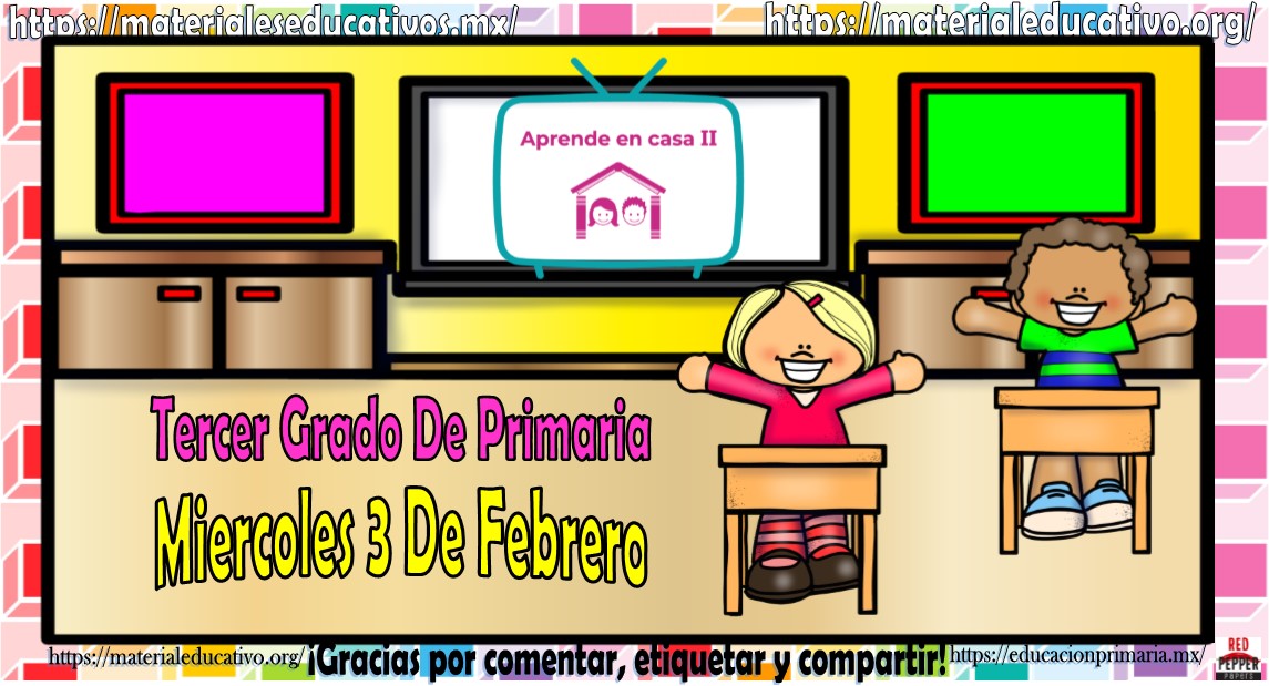 Amigos, compañeros docentes, padres de familia y alumnos que nos visitan, como ya es costumbre nosotros les proporcionaremos las clases contempladas para observarse en la TV del programa aprende en casa III, lo que antes se conocía como videos y preguntas. En esta oportunidad les queremos proporcionar las clases del tercer grado de primaria del miércoles 3 de febrero del 2021 del presente ciclo escolar 2020 – 2021, estaremos seguros que con este material podrá facilitar la realización de las actividades planteadas por parte del programa. Muchas gracias por visitarnos y recuerden que aquí podrán encontrar las preguntas, videos y todas las clases del programa de aprende en casa 2. Recuerden compartir nuestros enlaces en sus redes sociales y etiquetar a sus compañeros y amigos docentes en nuestras publicaciones.