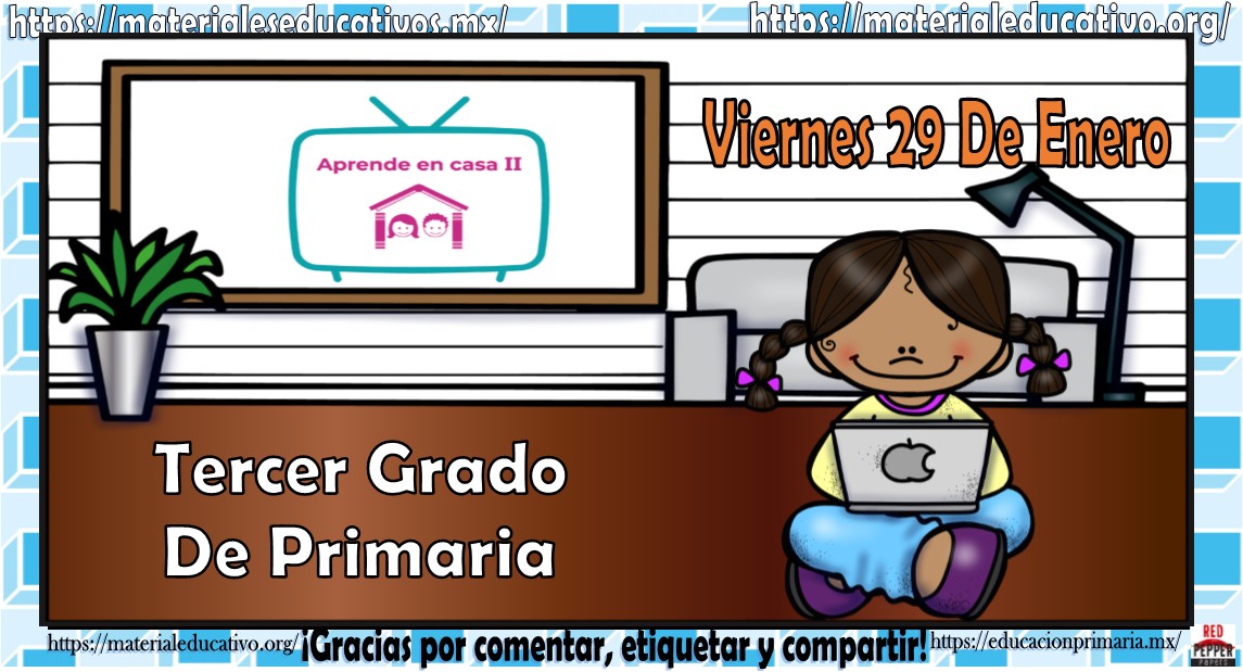 Amigos, compañeros docentes, padres de familia y alumnos que nos visitan, como ya es costumbre nosotros les proporcionaremos las clases contempladas para observarse en la TV del programa aprende en casa III, lo que antes se conocía como videos y preguntas. En esta oportunidad les queremos proporcionar las clases del tercer grado de primaria del viernes 29 de enero del 2021 del presente ciclo escolar 2020 – 2021, estaremos seguros que con este material podrá facilitar la realización de las actividades planteadas por parte del programa. Muchas gracias por visitarnos y recuerden que aquí podrán encontrar las preguntas, videos y todas las clases del programa de aprende en casa 2. Recuerden compartir nuestros enlaces en sus redes sociales y etiquetar a sus compañeros y amigos docentes en nuestras publicaciones.