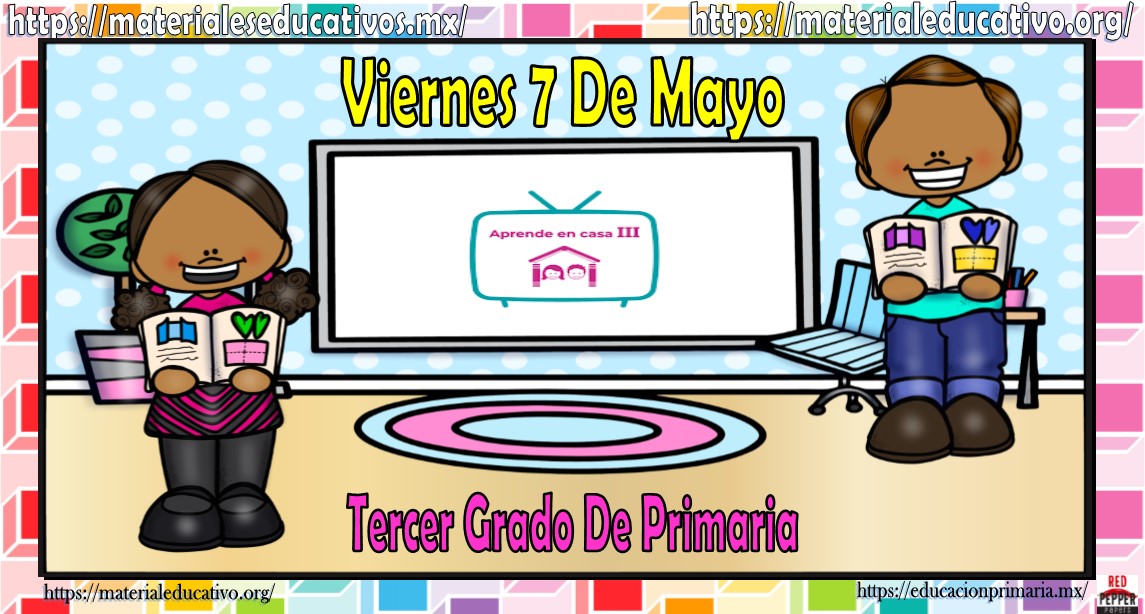 Amigos, compañeros docentes, padres de familia y alumnos que nos visitan, como ya es costumbre nosotros les proporcionaremos las clases contempladas para observarse en la TV del programa aprende en casa III, lo que antes se conocía como videos y preguntas. En esta oportunidad les queremos proporcionar las clases del tercer grado de primaria del viernes 7 de mayo del 2021 del presente ciclo escolar 2020 – 2021, estaremos seguros que con este material podrá facilitar la realización de las actividades planteadas por parte del programa. Muchas gracias por visitarnos y recuerden que aquí podrán encontrar las preguntas, videos y todas las clases del programa de aprende en casa 2. Recuerden compartir nuestros enlaces en sus redes sociales y etiquetar a sus compañeros y amigos docentes en nuestras publicaciones.