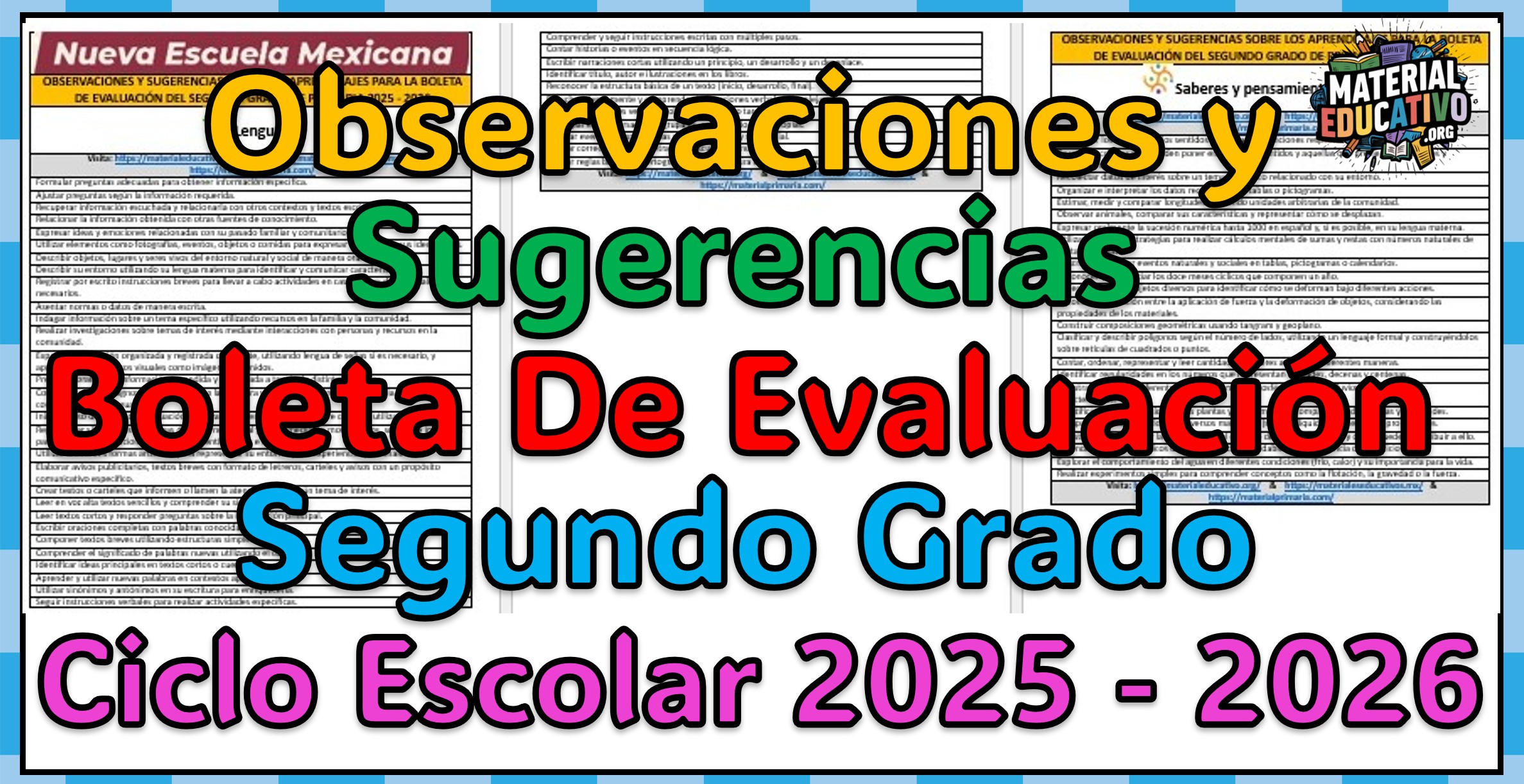 Compañeros y compañeras docentes, queremos compartir con todos ustedes las Observaciones y sugerencias sobre los aprendizajes para la boleta de evaluación del segundo grado del primer trimestre del ciclo escolar 2025–2026. 🏫📚