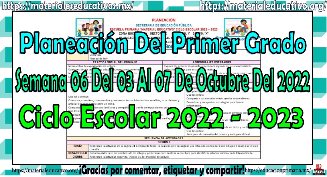 Amigos y amigas maestras que nos acompañan, queremos compartir con todos ustedes la planeación del primer grado de primaria de la semana 06 del 03 al 07 de octubre del ciclo escolar 2022 – 2023, estas planeaciones están realizadas de acuerdo al plan y programas de estudio del grado, la secuencia se realizo de acuerdo a los contenidos del presente trimestre, como saben también estamos elaborando y compartiendo con todos ustedes las planeaciones por mes, los cuales pueden consultar aquí y los planes de atención que también pueden consultar aquí, agradecemos que nos acompañen y visiten, les pedimos que nos apoyen compartiendo nuestros enlaces en sus redes sociales y etiqueten a sus compañeros y amigos docentes en nuestras publicaciones. Muchas gracias.