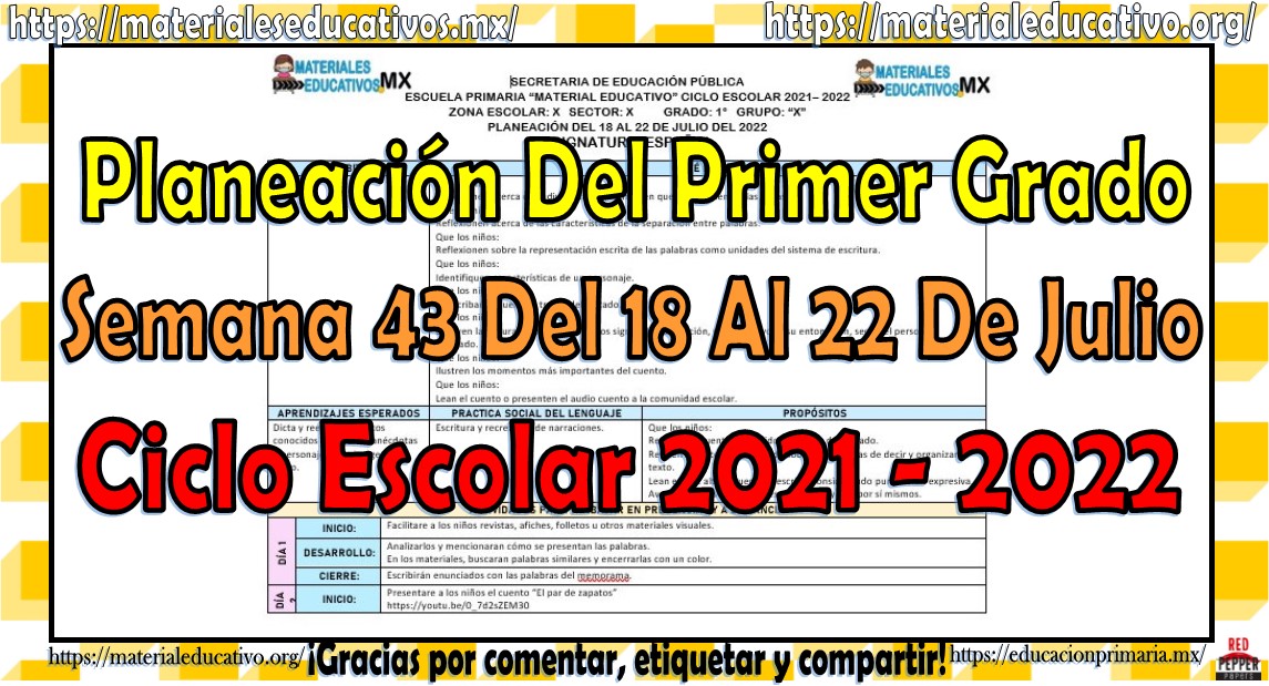 Amigos y compañeros docentes que nos visitan, queremos compartir con todos ustedes la planeación del primer grado de primaria semana 43 del 18 al 22 de julio del ciclo escolar 2021 – 2022 de acuerdo a los contenidos del grado con anexos las cuales nos ayudara a complementar las actividades planeadas, esperamos que les sean de gran utilidad para su labor educativa, les queremos pedir que nos apoyen compartiendo nuestros enlaces en sus redes sociales y etiqueten a sus compañeros y amigos docentes en nuestras publicaciones.