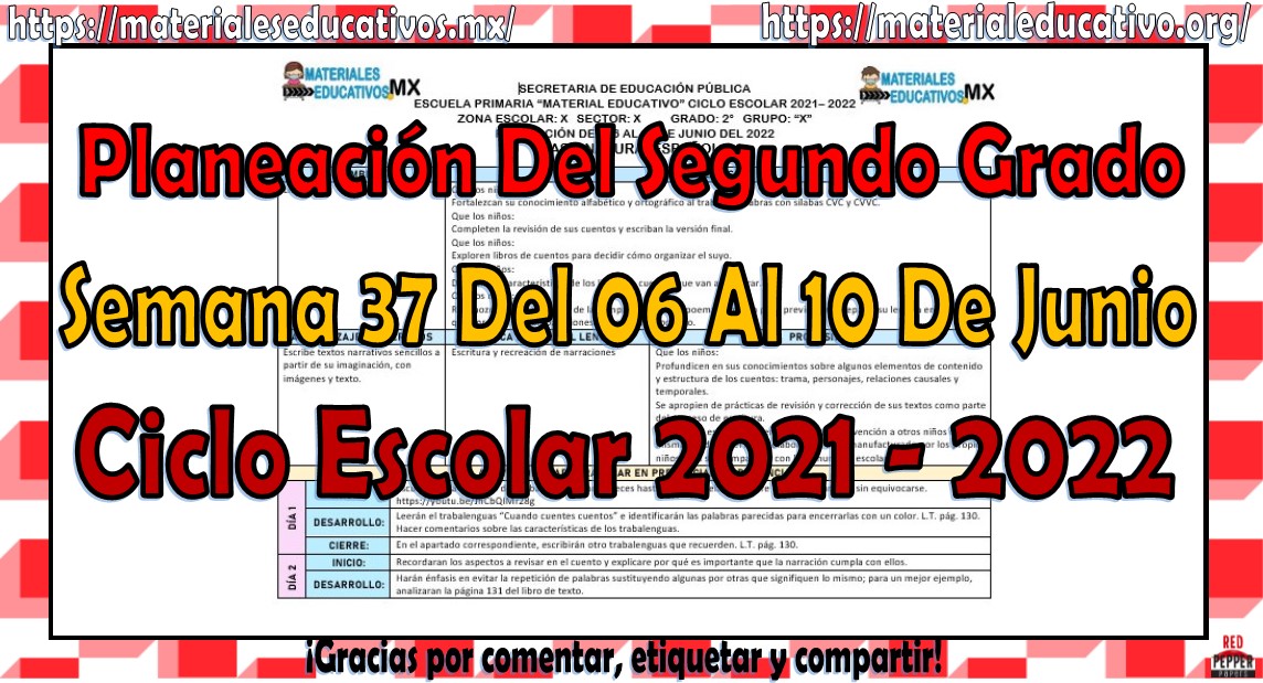 Amigos y compañeros docentes que nos visitan, queremos compartir con todos ustedes la planeación del segundo grado de primaria semana 37 del 06 al 10 de junio del ciclo escolar 2021 – 2022 de acuerdo a los contenidos del grado con anexos las cuales nos ayudara a complementar las actividades planeadas, esperamos que les sean de gran utilidad para su labor educativa, les queremos pedir que nos apoyen compartiendo nuestros enlaces en sus redes sociales y etiqueten a sus compañeros y amigos docentes en nuestras publicaciones.