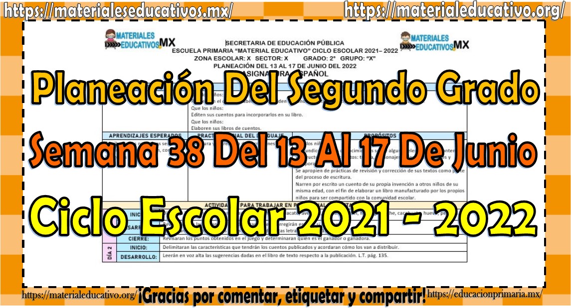 Amigos y compañeros docentes que nos visitan, queremos compartir con todos ustedes la planeación del segundo grado de primaria semana 38 del 13 al 17 de junio del ciclo escolar 2021 – 2022 de acuerdo a los contenidos del grado con anexos las cuales nos ayudara a complementar las actividades planeadas, esperamos que les sean de gran utilidad para su labor educativa, les queremos pedir que nos apoyen compartiendo nuestros enlaces en sus redes sociales y etiqueten a sus compañeros y amigos docentes en nuestras publicaciones.