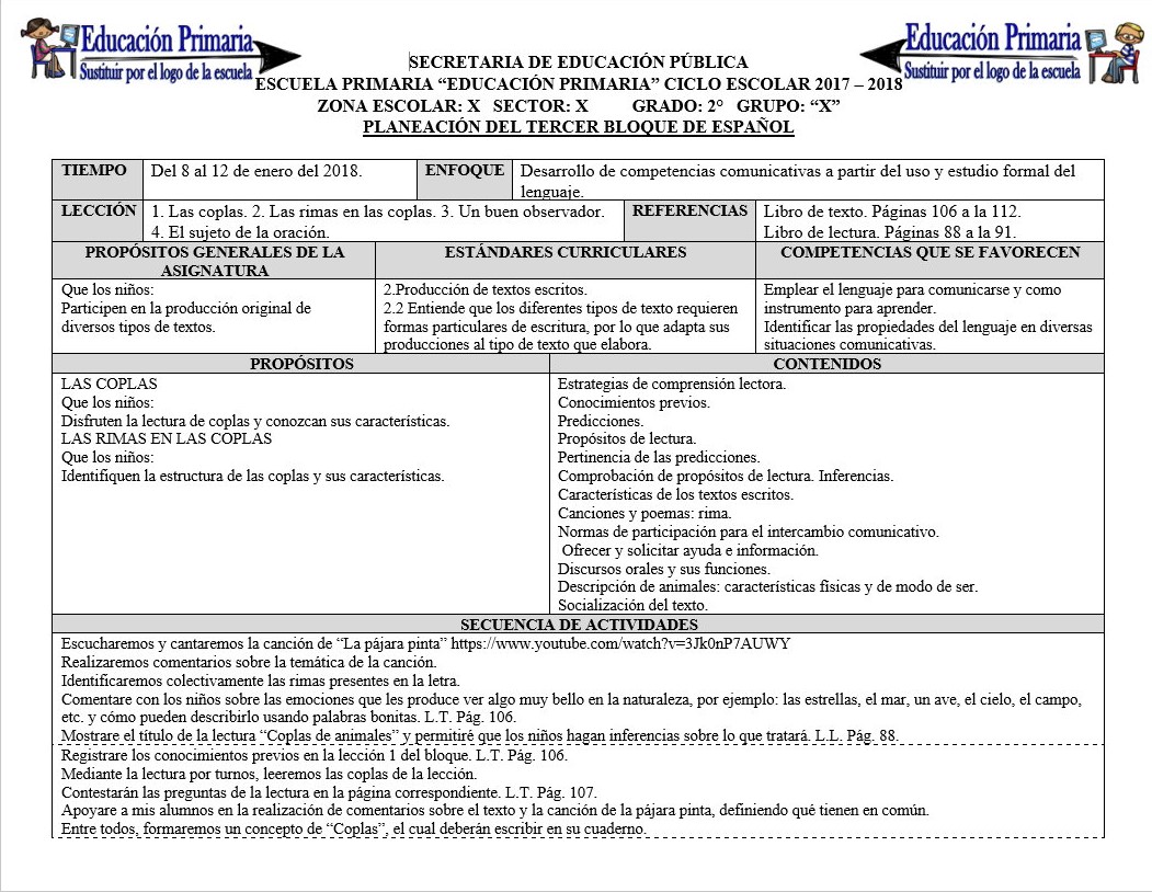 Descargar: Planeación del segundo grado para el tercer bloque del ciclo escolar 2017 – 2018
