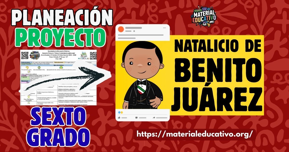 En esta ocasión compartimos una planeación didáctica por proyectos sobre el natalicio de Benito Juárez, diseñada especialmente para alumnos de Sexto grado de primaria, Fase 4, de acuerdo con el Plan de Estudios 2022 de la Nueva Escuela Mexicana. Este proyecto permite que las niñas y los niños conozcan de manera sencilla y significativa la vida y la importancia de Benito Juárez en la historia de México, resaltando valores fundamentales como la justicia, el respeto, la igualdad y el esfuerzo personal.