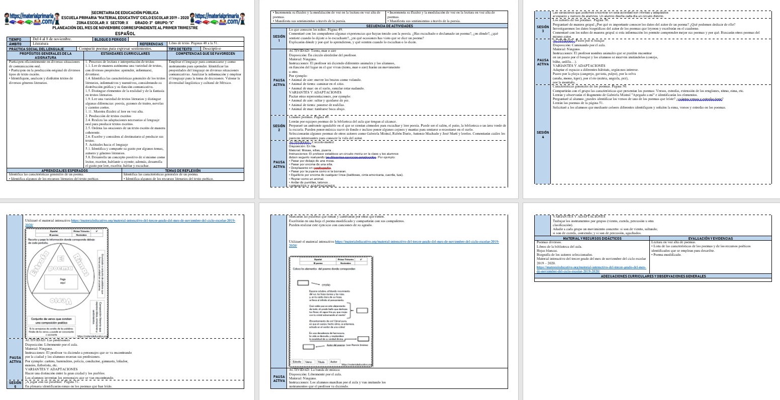 Compañeros y amigos docentes que nos visitan, en esta ocasión les queremos compartir la planeación del tercer grado del mes de noviembre del ciclo escolar 2019 – 2020 del primer trimestre con todas las materias de dicho grado, agradecemos enormemente al profesor José Luis Acosta Saches por enviarnos las planeaciones, recuerden compartir nuestros materiales en sus redes sociales y etiqueten a sus compañeros y amigos docentes en nuestras publicaciones, recuerden que para complementar sus actividades plasmadas en sus planeaciones pueden visitar los materiales que elaboramos para todos ustedes, muchas gracias.