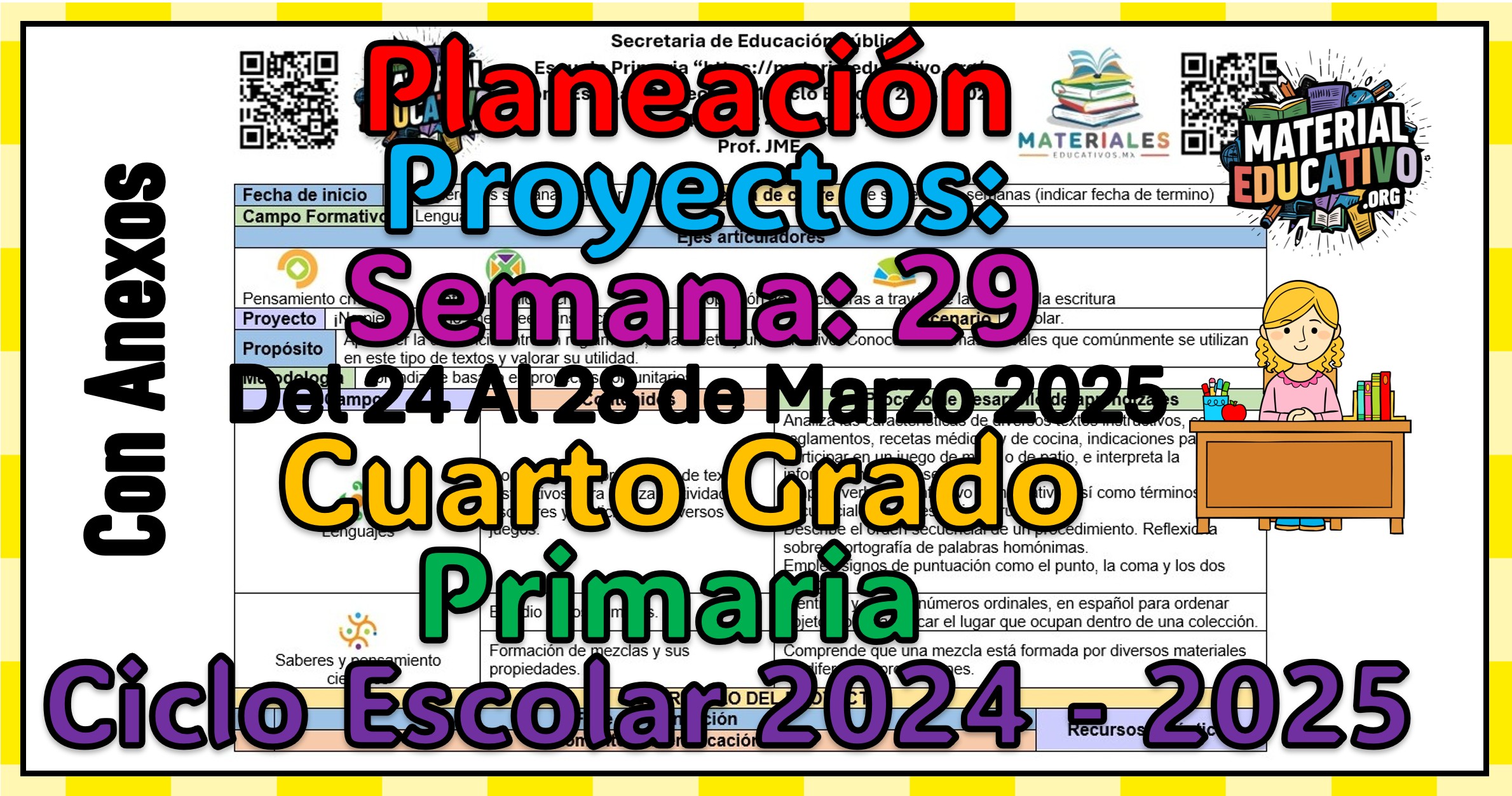 Compañeros maestros y maestras que nos acompañan queremos compartir con todos ustedes la Planeación didáctica por proyectos del cuarto grado de primaria semana 29 del ciclo escolar 2024 – 2025. Del 24 al 28 de marzo de 2025.