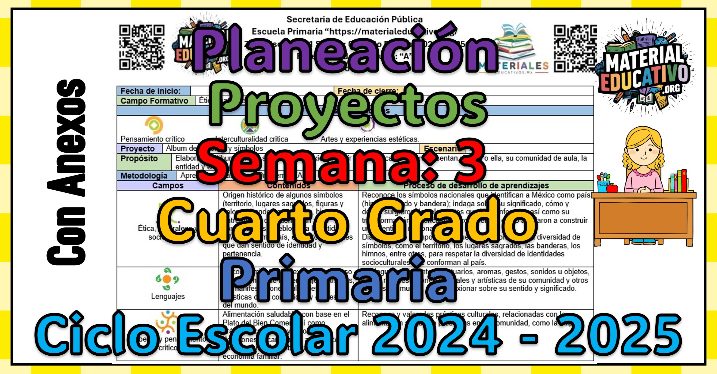 Compañeros maestros y maestras que nos acompañan queremos compartir con todos ustedes la Planeación didáctica por proyectos del cuarto grado de primaria semana 3 del ciclo escolar 2024 – 2025.