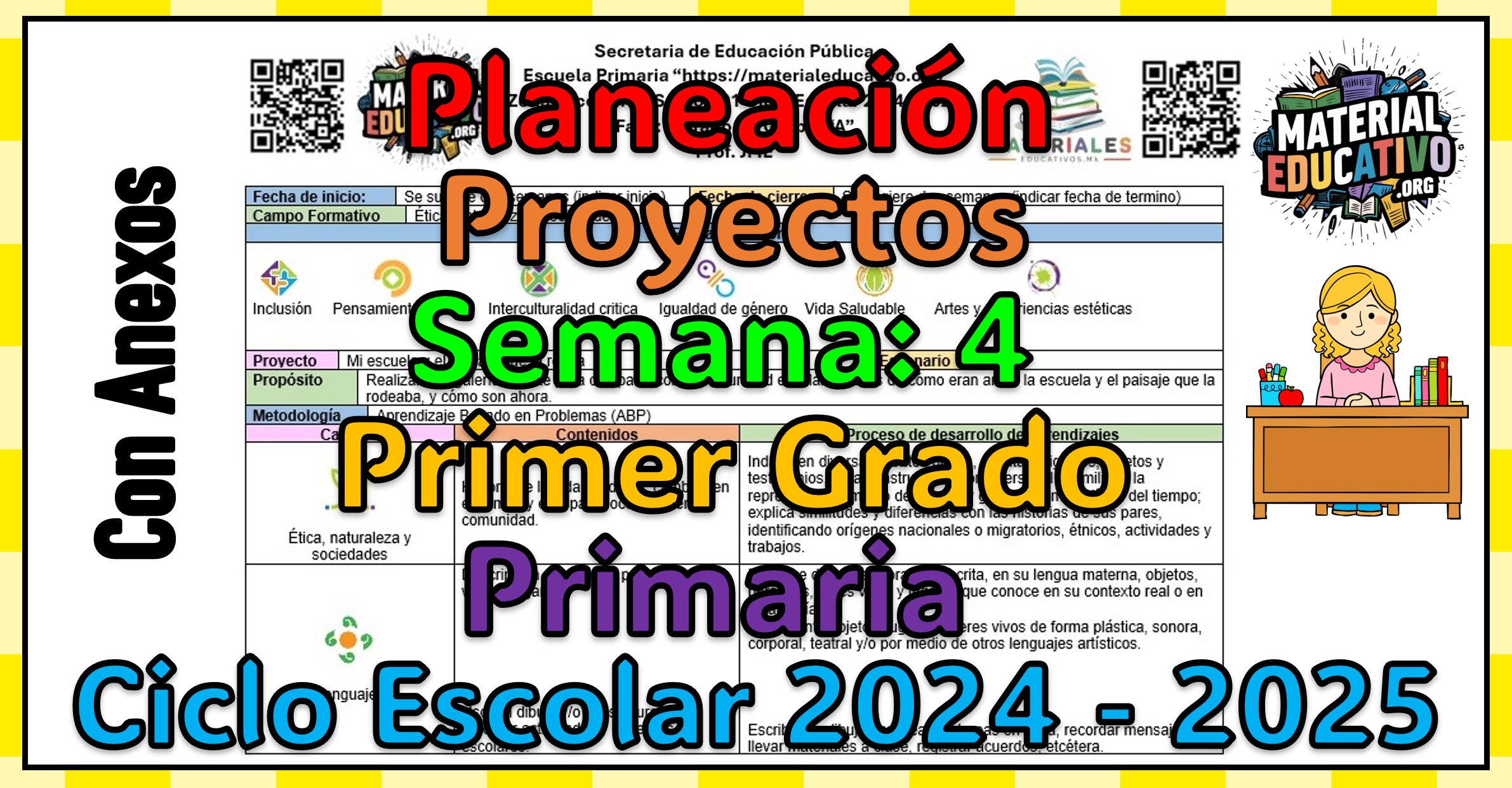 Compañeros maestros y maestras que nos acompañan queremos compartir con todos ustedes la Planeación didáctica por proyectos del primer grado de primaria semana 4 del ciclo escolar 2024 – 2025.