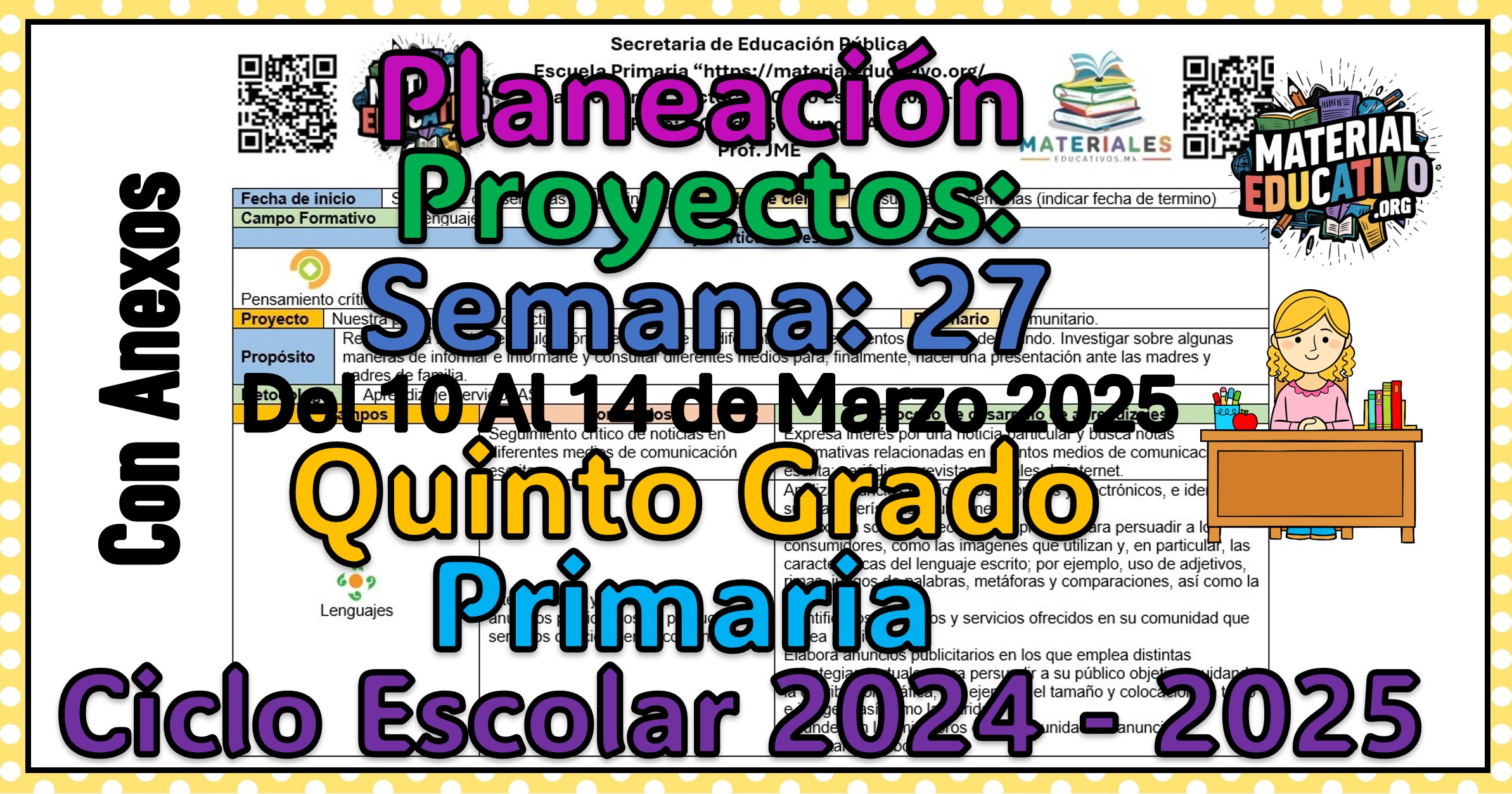 Compañeros maestros y maestras que nos acompañan queremos compartir con todos ustedes la Planeación didáctica por proyectos del quinto grado de primaria semana 27 del ciclo escolar 2024 – 2025. Del 10 al 14 de marzo de 2025.