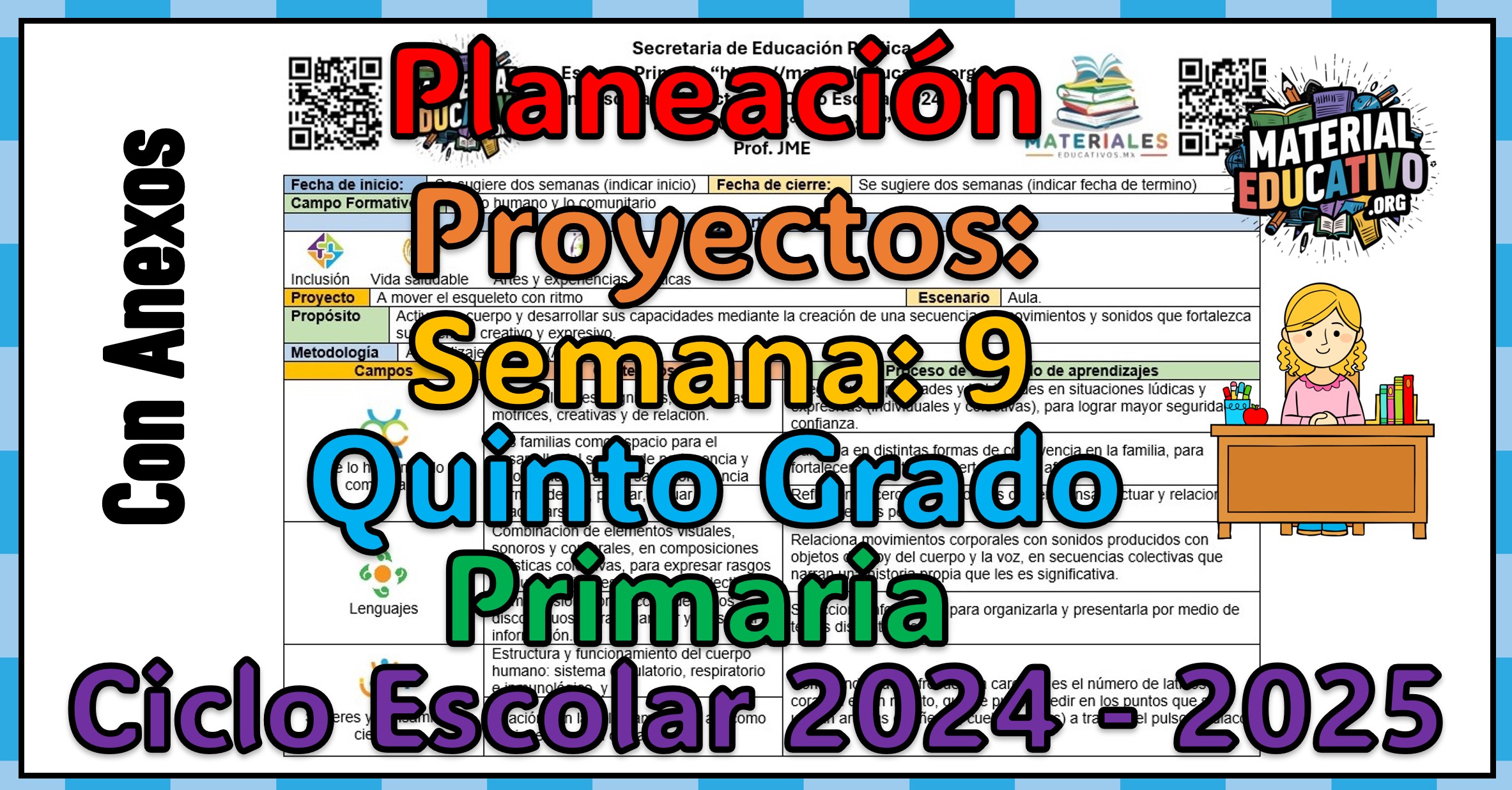 Compañeros maestros y maestras que nos acompañan queremos compartir con todos ustedes la Planeación didáctica por proyectos del quinto grado de primaria semana 9 del ciclo escolar 2024 – 2025.