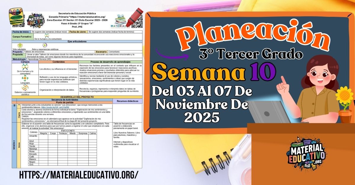 Compañeros y compañeras que nos visitan, con el gusto de saludarlos queremos compartir la Planeación didáctica por proyectos del tercer grado de primaria semana 10 del 03 al 07 de noviembre del ciclo escolar 2025 – 2026.