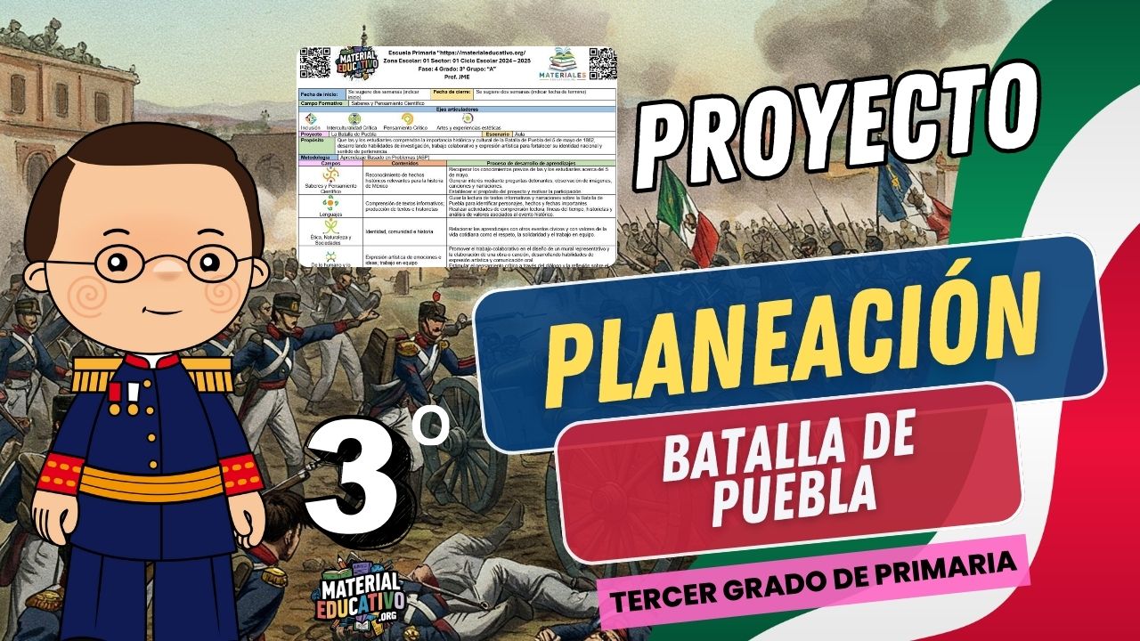 Queridas compañeras y compañeros docentes, en esta ocasión les compartimos con mucho entusiasmo la Planeación por Proyectos «La Batalla de Puebla», diseñada especialmente para Tercer Grado de Primaria. Esta propuesta incluye actividades didácticas creativas y significativas que permitirán a las y los estudiantes comprender la importancia del 5 de mayo, una fecha clave en la historia de México.