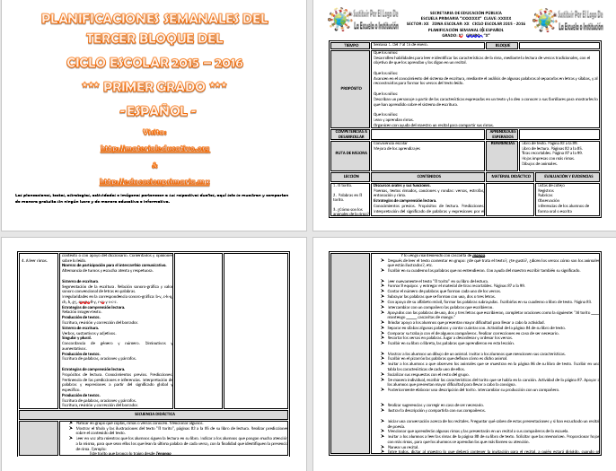 Descargar: Planeaciones del primer grado del tercer bloque del ciclo escolar 2015 – 2016