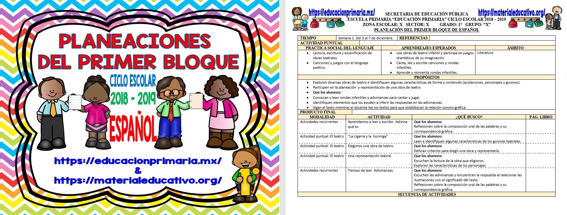 Descargar: Planeaciones del primer grado del mes de diciembre ciclo escolar 2018 – 2019